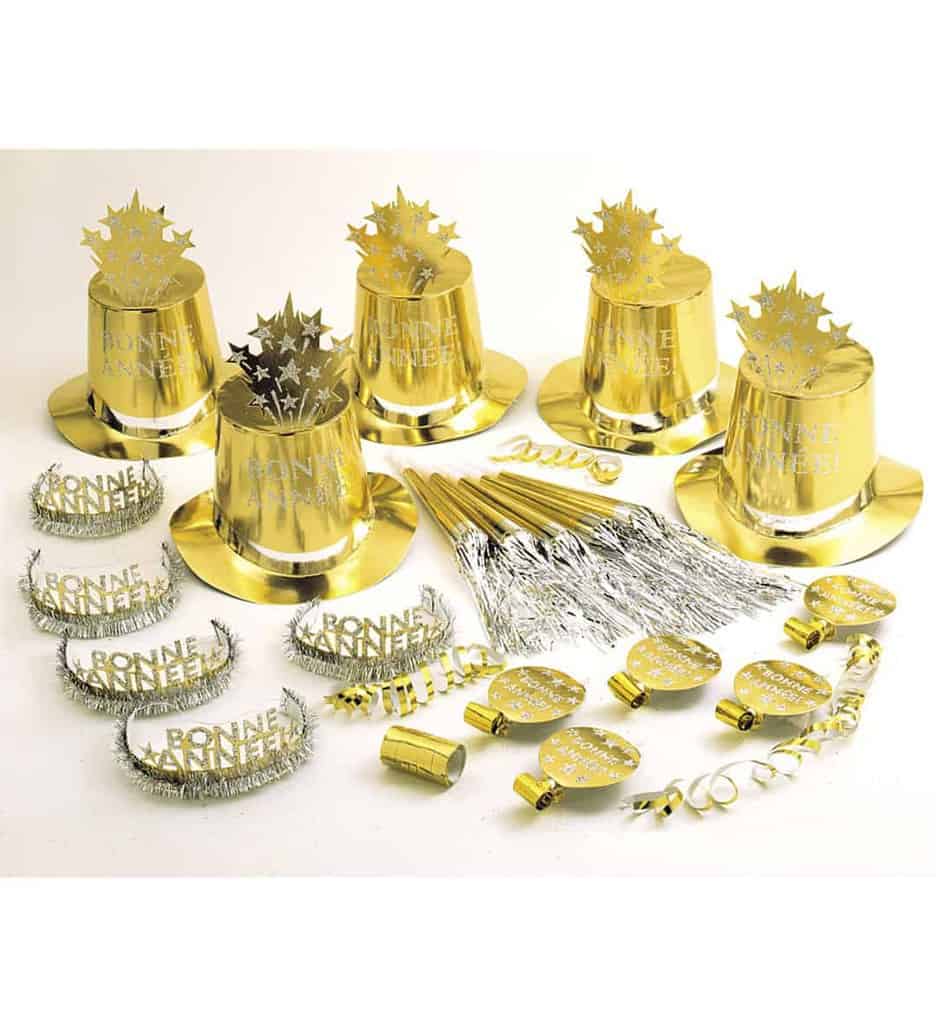 Un magnifique pack de luxe couleur or pour 10 personnes pour faire la fiesta lors du réveillon du nouvel an cette magnifique boite de couleur or regroupe tout les cotillons et accessoires de la même couleur dont vous avez besoin pour faire la fête, des serpentins, des trompettes, des sifflets sans gênes, des chapeaux et des diadèmes. Une boite pratique et économique pour vous souhaiter la bonne année entre amis ou collègues, Ce pack de cotillons Widmann va vous simplifier la vie si vous organiser une grande fête pour adultes ou enfants. Retrouvez tous nos cotillons et confettis en cliquant ici.
