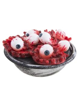 Un bol avec des oreilles et des yeux sanglants pour une décoration lors de la fête d’Halloween ou des soirées déguisées sur le thème de l’horreur.