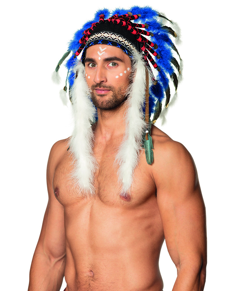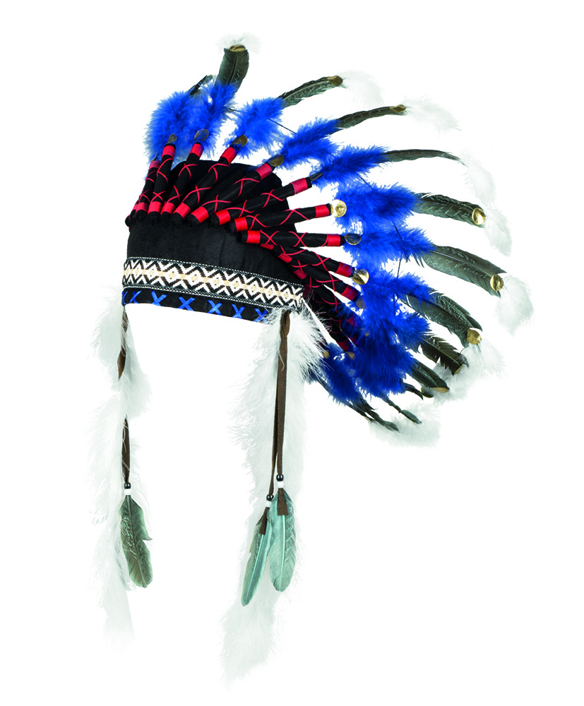La coiffe du Chef indien de la marque Boland, idéale pour vous faire respecter et impressionner les invités dans une soirée western, si vous êtes dans le camp des indiens, cette coiffe complétera parfaitement votre déguisement. Embellie avec de grandes plumes bleues et blanches, ce chapeau d’indien est très réaliste et vous allez pouvoir vraiment incarner un grand chef Apache lors d’une soirée déguisée ou d’un spectacle.
