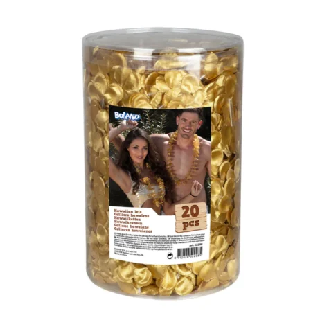 Un joli collier à fleurs dorées dans le style hawaïen mais sur le thème des fêtes de fin d’année (voir photo), il sera idéal pour accompagner votre tenue dans des soirées déguisées de vacances pour accompagner une tenue décontractée ou bien en discothèque. Lot de chez Boland vendu par 20 colliers minimum, le prix indiqué est le prix unitaire.