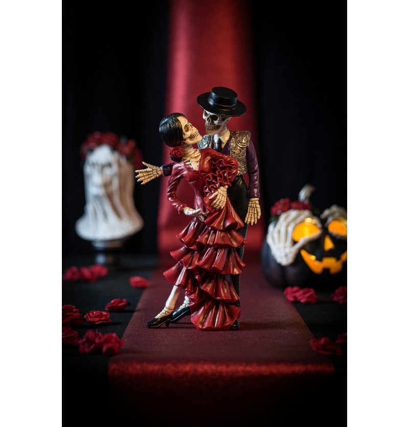 COUPLE JOUR DES MORTS (Couple danseurs polyrésine) Taille 20 x 12 x 40 cm