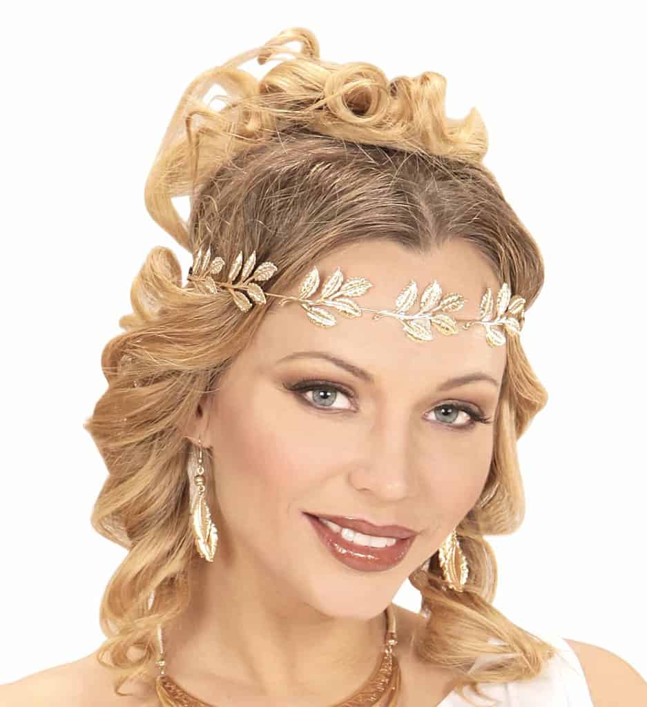 Une très belle couronne de lauriers en matière métal qui complétera parfaitement votre déguisement d’époque, des lauriers dorés montés sur un serre tête. Cette couronne de chez Widmann est l’accessoire cheveux  idéal pour être dans le thème antique ou romain d’une soirée déguisée.
