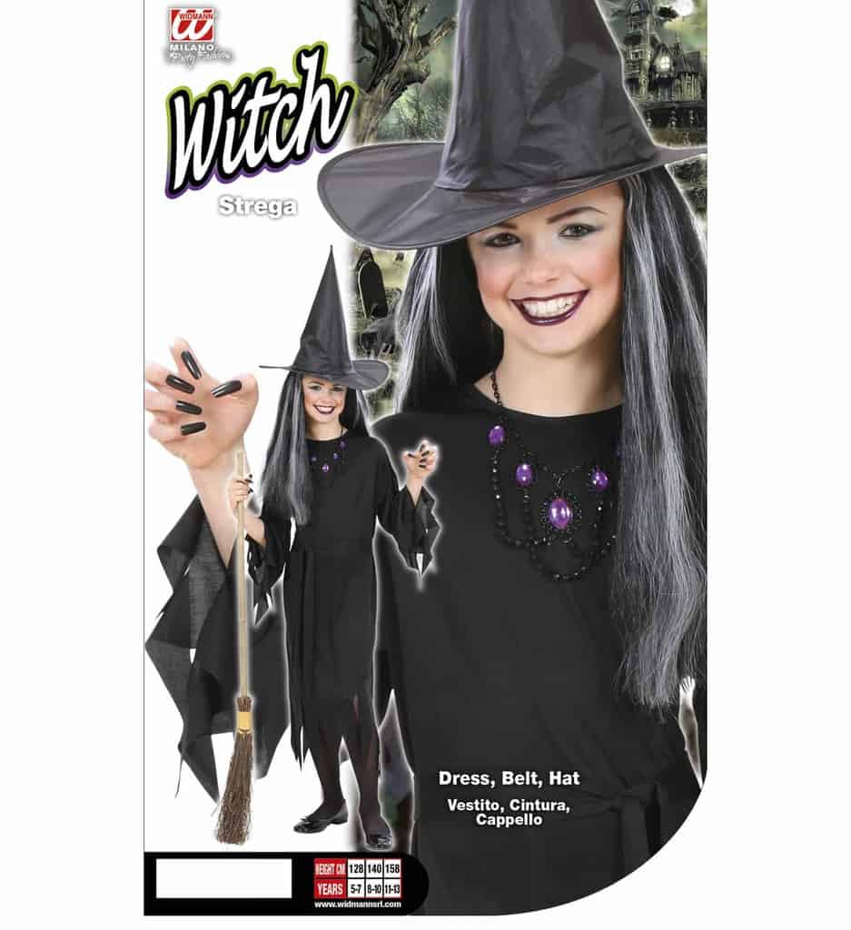 Magnifique déguisement Halloween pour enfants de la sorcière, cette version de la marque Widmann avec son chapeau et sa longue robe est conçue pour les petites filles de 5 à 13 ans. Idéal pour la fête d’Halloween, un goûter d’anniversaire ou une soirée déguisée avec papa et maman. Cette robe de petite sorcière peut aussi être utilisée lors d’un spectacle de fin d’année. Découvrez l’ensemble des déguisements enfants. Ce modèle existe en plusieurs tailles, de 5 à 13 ans, choisissez votre taille sur la droite de l’écran. Tailles proposées 5-7 ans (128 cm), 8-10 ans (140 cm) 11-13 ans (158 cm). Ce modèle est vendu sans le balai et les ongles.