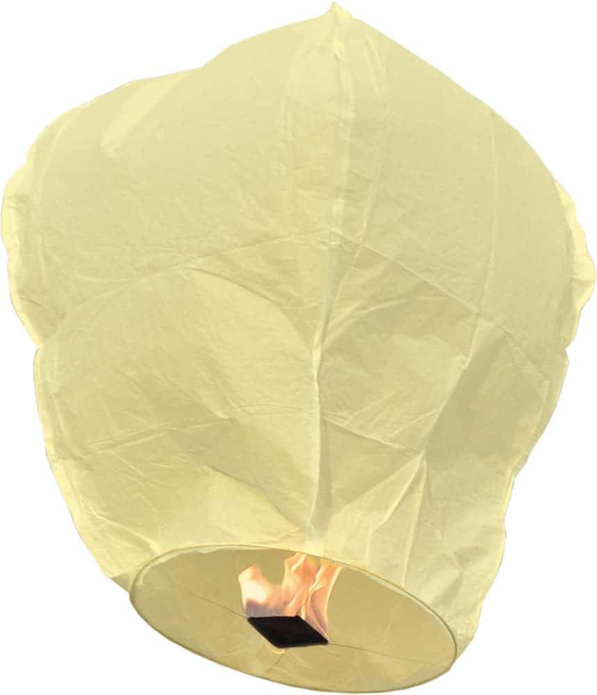 La lanterne Thaïlandaise et volante utilisée par les asiatiques depuis plus de 2000 ans aujourd’hui appelée lanterne céleste. Cette lanterne mesure 37 cm de diamètre, elle est composée d’une enveloppe en papier et d’un brûleur. Il suffit d’allumer le brûleur pour que la lanterne se gonfle et s’envole dans le ciel, elle restera visible à environ 1 km. Un objet lumineux très romantique, une alternative au traditionnel feu d’artifice pour un mariage ou un événement de votre choix. Il ne vous reste plus qu’à faire un vœu au moment du lâché de lanterne. Ce lot est vendu par 10 pièces, 4 couleurs assorties (voir photo). Le prix indiqué est le prix unitaire.