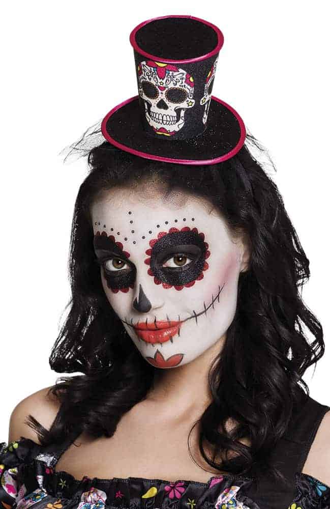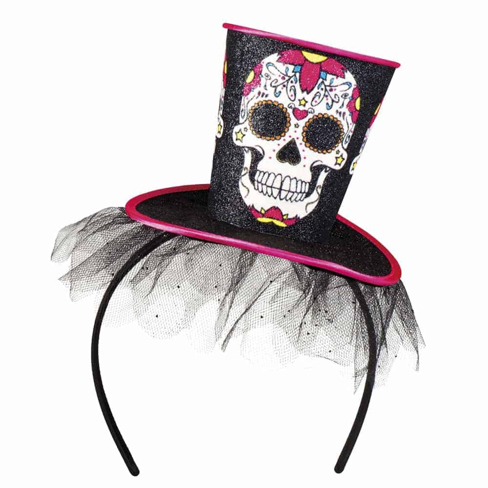 RECHERCHE RAPIDE : accessoires cheveux, affreux, Boland halloween, chapeau, chapeau Boland, chapeau haut de forme, crane, Dia de los muertos, epouvantail, evg, Halloween, Marque Boland, mexique, mini chapeau, serre tete, squelette, tete de mort