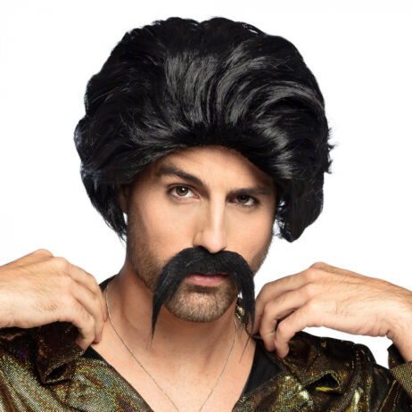 Ce kit comprend une perruque noire d’homme brun, avec une moustache noire assortie, cet ensemble Boland habillera parfaitement votre visage pour accompagner un déguisement rétro années 70 ou une autre époque lors d’une soirée déguisée.