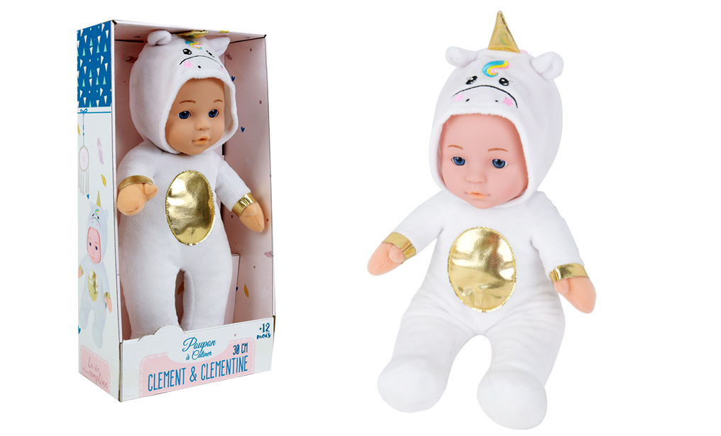 Un joli poupon de 30 cm qui existe en 2 coloris (voir photo). Vous pourrez lui faire des câlins, ce poupon plaira beaucoup aux petites filles, c’est un très joli cadeau à faire pour un anniversaire ou pour Noel. Une bonne idée de gros lot pour une kermesse. Retrouvez tous nos idées de cadeaux pour un arbre de noël.