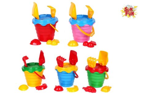 Le seau garni 15.5 x 17 x 23 cm avec tous les accessoires nécessaires pour aller à la plage, le rateau, la pelle, les moules, un kit complet de jeux pour les enfants qui aiment jouer sur la plage et faire des châteaux de sable. Idéal comme gros lot de kermesse ou lors d’une tombola. Découvrez tous nos jeux aquatiques.