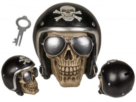 Une tirelire représentant une tête de mort de biker ou motard avec son casque et ses lunettes, un objet original pour la soirée d’Halloween, vous pourrez mettre cette tirelire dans un coin de la salle ou se déroulera votre prochaine soirée déguisée. Une jolie décoration lors d’une soirée sur le thème de la magie et de l’horreur. Découvrez toutes nos décorations animées pour Halloween en cliquant ici.